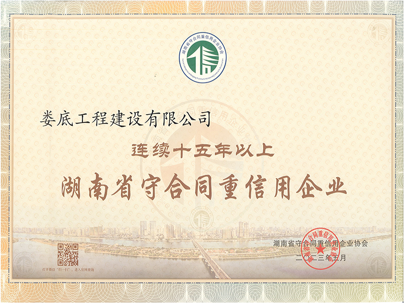 2022年度連續(xù)十五年以上湖南省守合同重信用企業(yè)榮譽(yù)證書