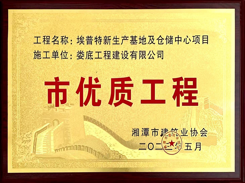 2022年度埃普特新生產(chǎn)基地及倉(cāng)儲(chǔ)中心項(xiàng)目湘潭市優(yōu)質(zhì)工程獎(jiǎng)牌