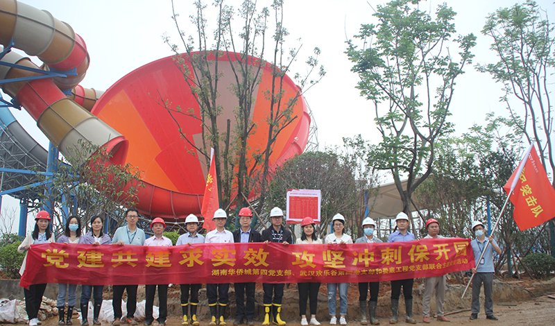 5月27日下午,湖南華僑城第四黨支部、武漢歡樂谷第四黨支部和婁底工程建設(shè)有限公司黨支部在水公園項目部會議室和建設(shè)現(xiàn)場開展“黨建共建求實效 攻堅沖刺保開園”聯(lián)合主題黨日活動。湖南華僑城監(jiān)事會主席于吉林、財務(wù)副總監(jiān)雷金城、武漢歡樂谷駐衡陽項目負責(zé)人王華、婁底工程黨支部書記林有良、副總經(jīng)理彭洪偉以普通黨員身份出席,三方黨員、發(fā)展對象、入黨積極分子和員工代表參加活動。