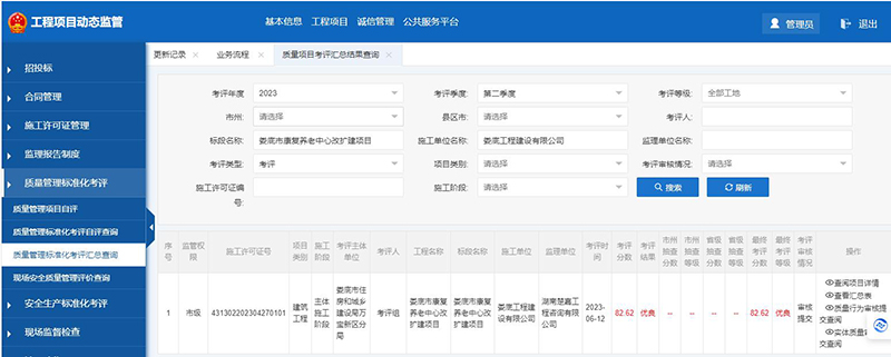 該項(xiàng)目在2023年度安全生產(chǎn)標(biāo)準(zhǔn)化季度考評(píng)和質(zhì)量管理標(biāo)準(zhǔn)化季度考評(píng)中獲得了較好成績(jī)。質(zhì)量管理標(biāo)準(zhǔn)化季度考評(píng)第二、三季度被評(píng)為優(yōu)良;安全生產(chǎn)標(biāo)準(zhǔn)化季度考評(píng)第三、四季度被評(píng)為優(yōu)良。