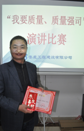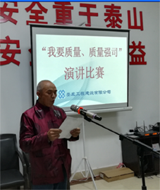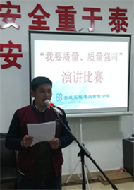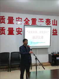 2017年11月17日晚,公司在機(jī)關(guān)辦公室大會議室舉辦了一場別開生面的“我要質(zhì)量,質(zhì)量強(qiáng)司”演講比賽。共有16位項目經(jīng)理上臺發(fā)表了主題演講。經(jīng)過評委現(xiàn)場打分評定,來自百弘學(xué)府城的項目經(jīng)理李朝陽榮獲一等獎;公司江龍灘基地項目經(jīng)理李紅暉、雙峰三塘鋪獨(dú)立工礦區(qū)現(xiàn)代產(chǎn)業(yè)園蜉化器項目項目經(jīng)理謝晃分獲二等獎。