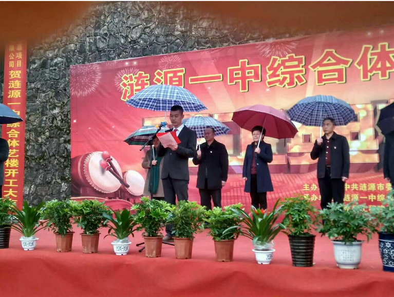 2018年1月16日,由我司中標承建的漣源市第一中學體藝綜合樓開工慶典儀式在漣源市第一中學校園內(nèi)舉行。漣源市委市政府四大家的領導及建設、施工、監(jiān)理單位的領導參加了慶典儀式。公司副總經(jīng)理顏克靈先生代表公司出席開工慶典并講了話。