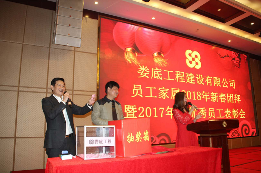2018年2月27日,是2018年農(nóng)歷新年正月十二,婁底工程建設(shè)有限公司員工家屬2018新春團(tuán)拜暨2017年度優(yōu)秀員工表彰會(huì)在418華天大酒店5樓泰山廳舉行。公司全體員工及家屬共240余人參加了新春團(tuán)拜、表彰活動(dòng)。湖南湘中礦業(yè)集團(tuán)副總裁兼婁底工程建設(shè)有限公司董事長(zhǎng)、總經(jīng)理張愛(ài)慧先生、湖南湘中礦業(yè)集團(tuán)副總裁劉璐先生參加了新春團(tuán)拜表彰活動(dòng)并分別致辭。會(huì)上還進(jìn)行了搶答、競(jìng)猜等有獎(jiǎng)游戲活動(dòng),現(xiàn)場(chǎng)氣氛喜慶、熱烈,笑聲、掌聲、歡呼聲此起彼伏。